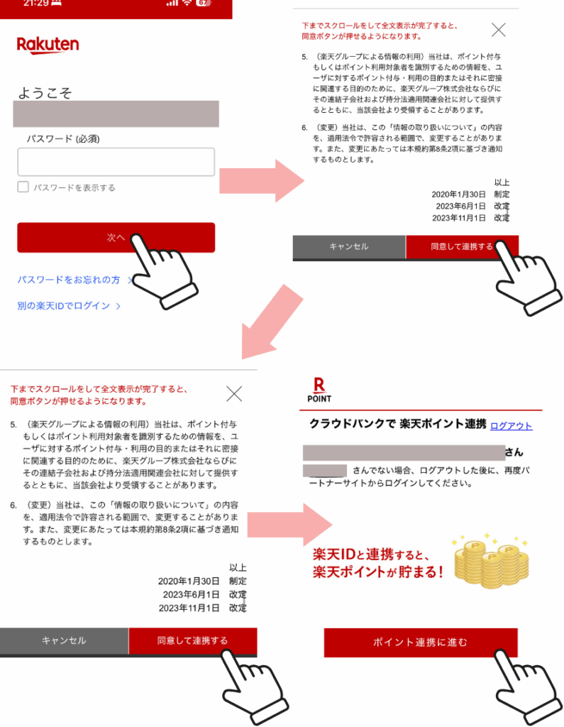 その場合は事前に楽天ポイントとの連携をしておいてね!