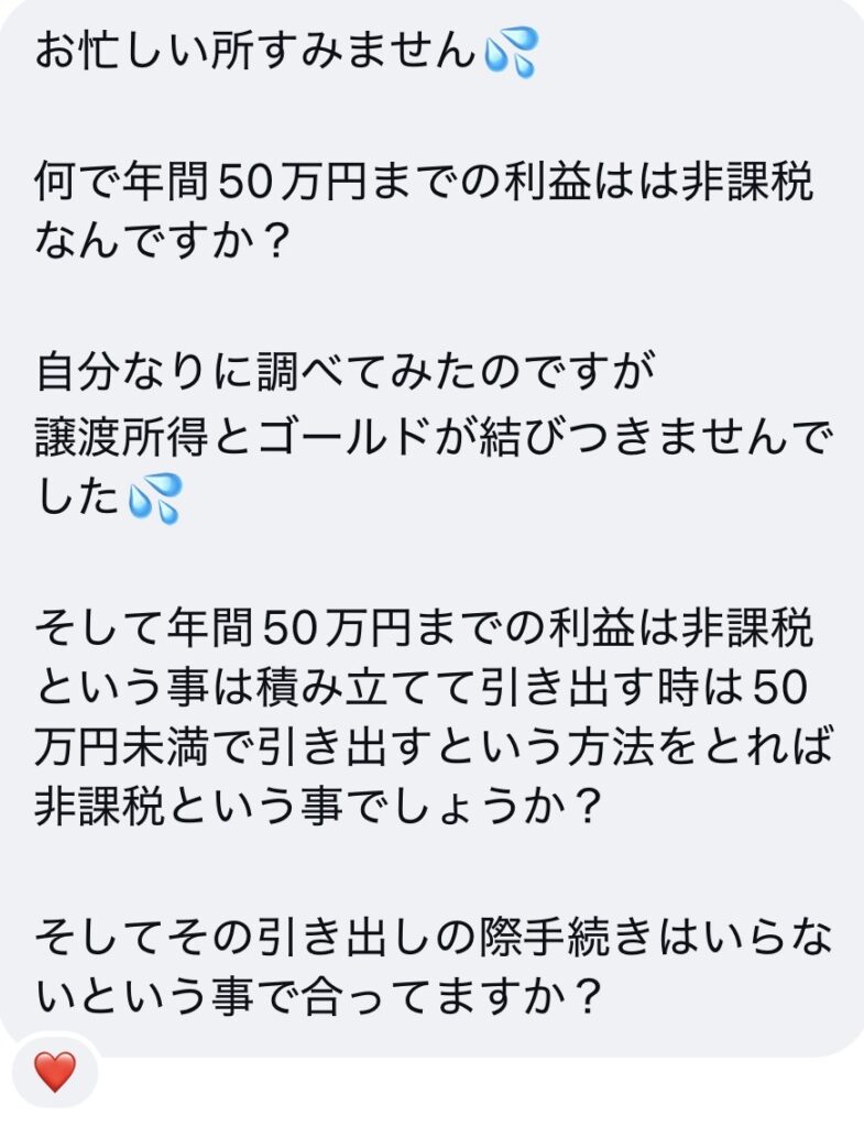 実は金って非課税枠50万円があるからNISAの枠を使わなくていいからお得なの✨