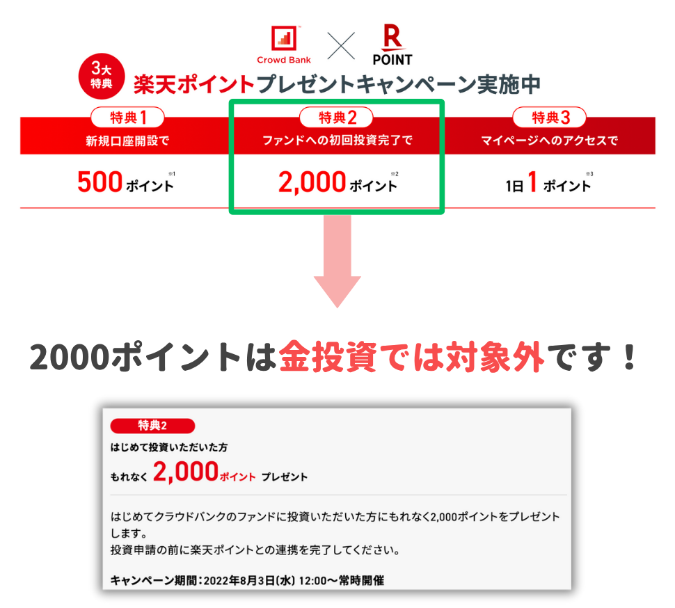 他のファンドに投資する場合は2000ポイント対象だよ!