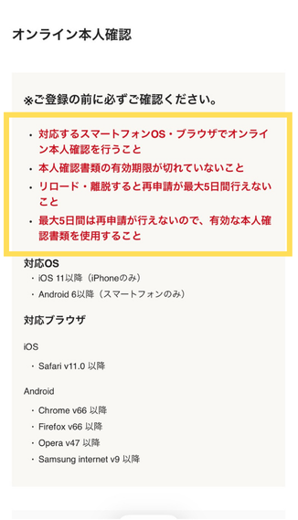 途中離脱しちゃったり、有効期限が切れている本人確認書類だと、最大5日間再申請が行えなくなる💦