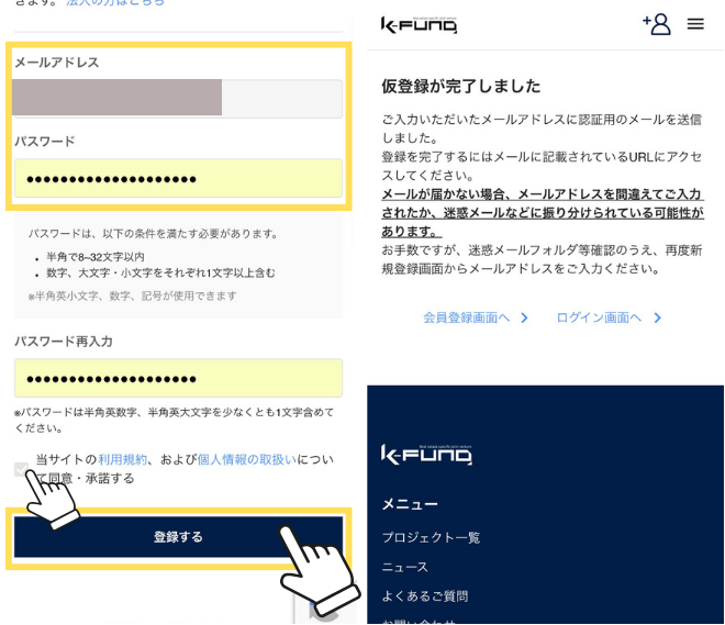仮登録完了のメールに記載のURLをタップ
