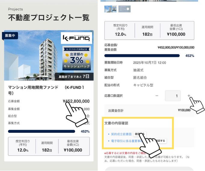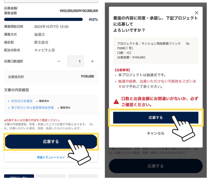 応募口数を選択して、文書内容を確認するよ!