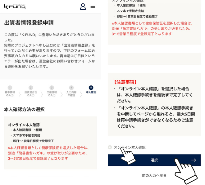 オンライン本人確認を押して「選択」をタップ!