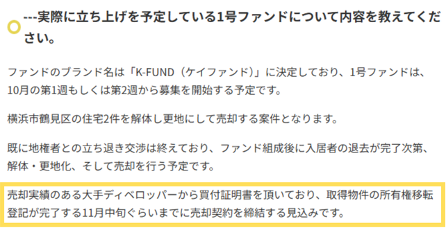 マンション用地開発ファンド (K-FUND1号)