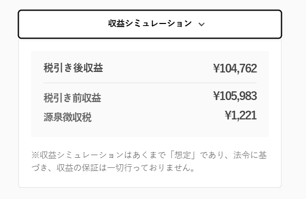 →1年後の税引き後収益額は約105,983円になる想定!