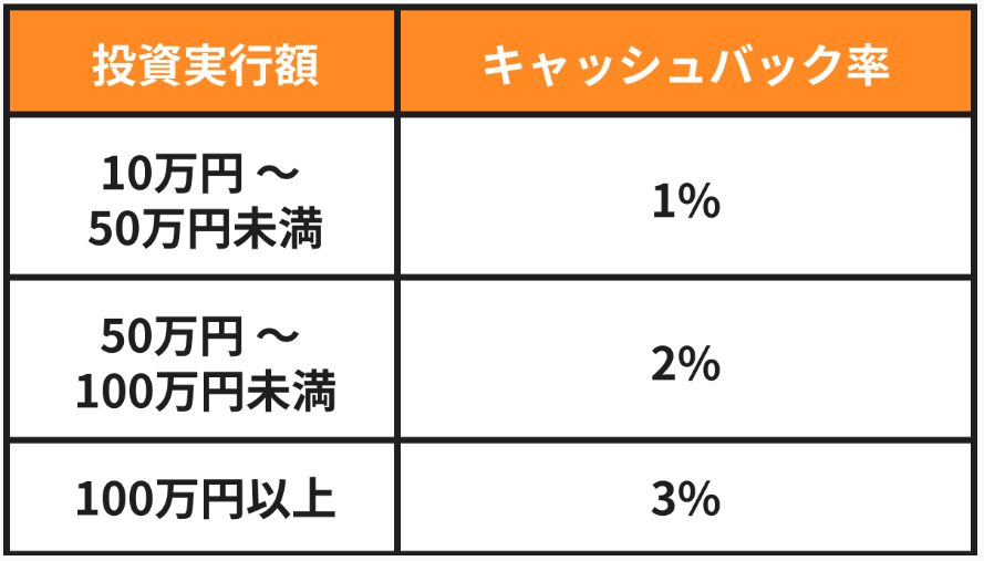 今だけ10万円以上を投資すると、投資額の最大3%がキャッシュバックされるチャンスだから、下のボタンから申込んでね!