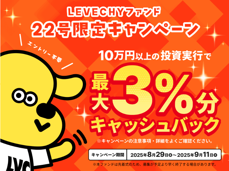 実はLEVECHYファンド22号限定で、最大3%のキャッシュバックキャンペーンを開催中!