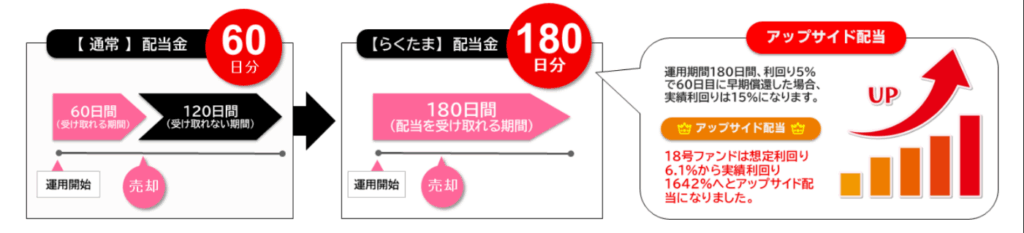 5日ルールとは、入金期間・(運用開始までの)待機期間・払戻日の3つの主要日程を5日程度に短縮することで資金効率最大化を目指すらくたま独自のスケジュール。